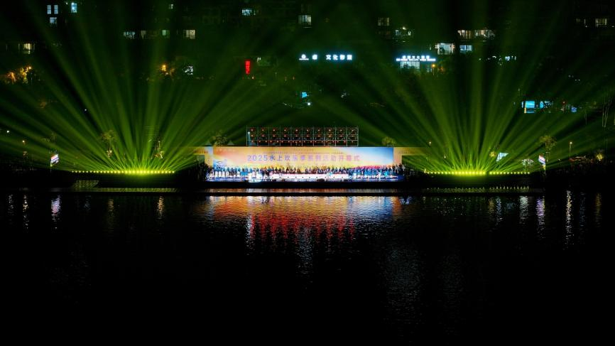 10月29日晚,2025年“与湖共舞・乐在开州”汉丰湖水上欢乐季系列活动、第十届重庆文化旅游惠民消费季(开州分会场)、2025年中国摩托艇公开赛(开州站)在灯火璀璨的开州区汉丰湖畔同步拉开帷幕。这场融合文体旅多元素的盛会,以高规格的赛事组织与广泛的群众参与相结合,展现出开州推动文旅产业高质量发展的新格局。