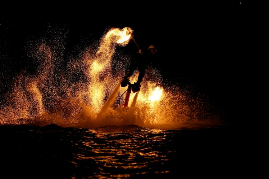 水上飞人火壶表演。